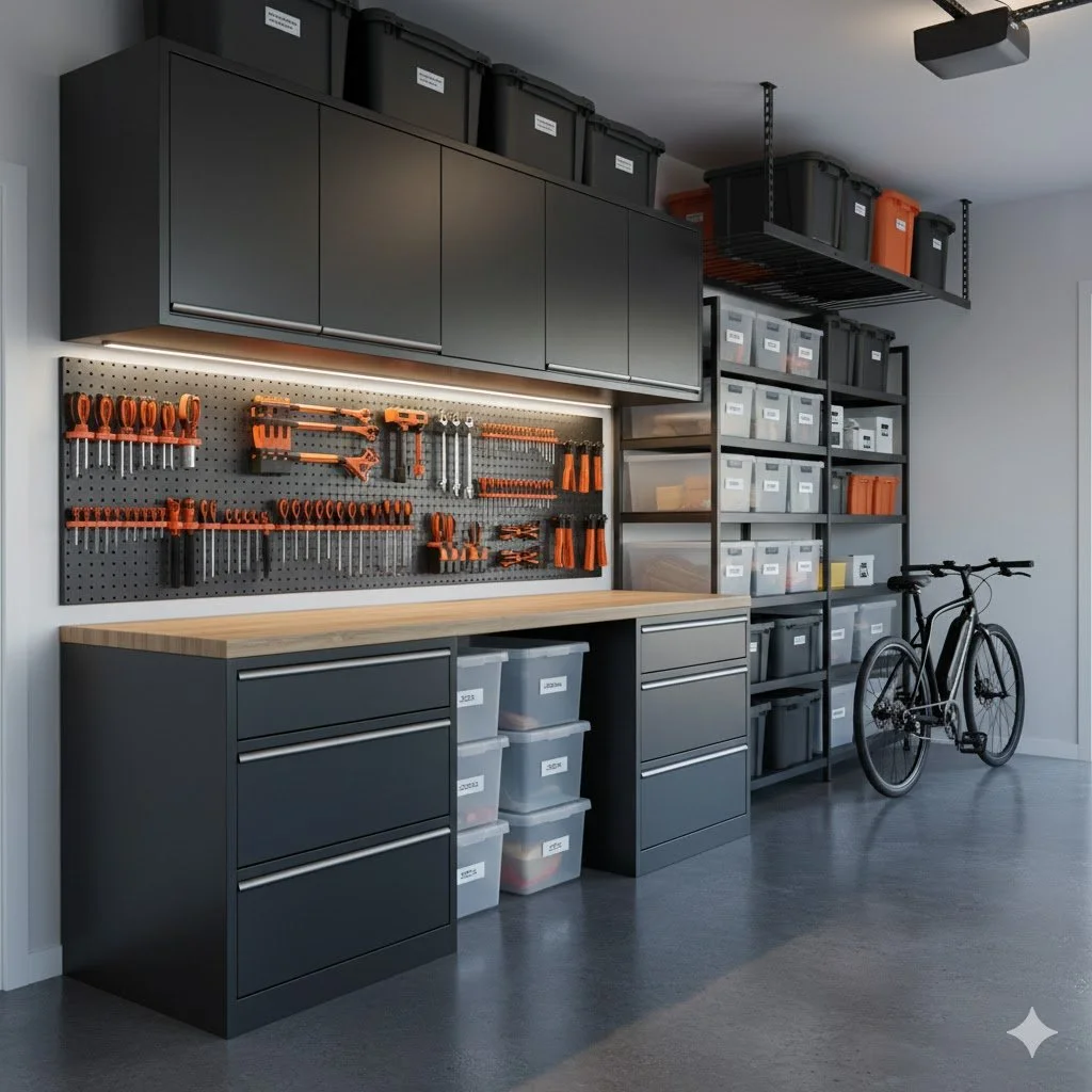 Smart Storage Solutions: Custom garage organization and basement systems designed using AI technology to maximize your space.